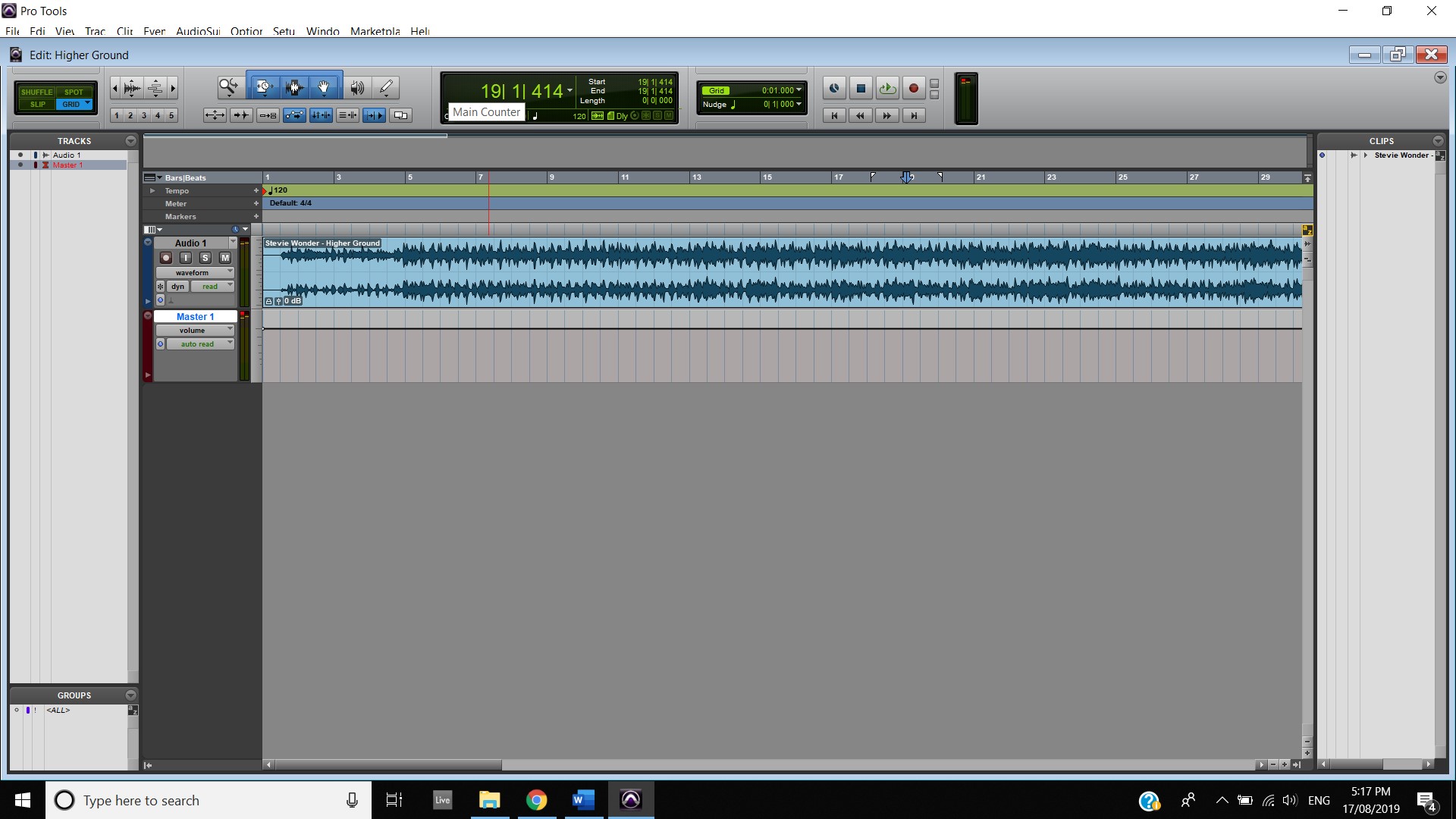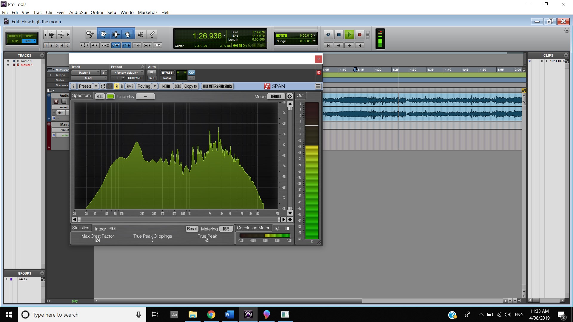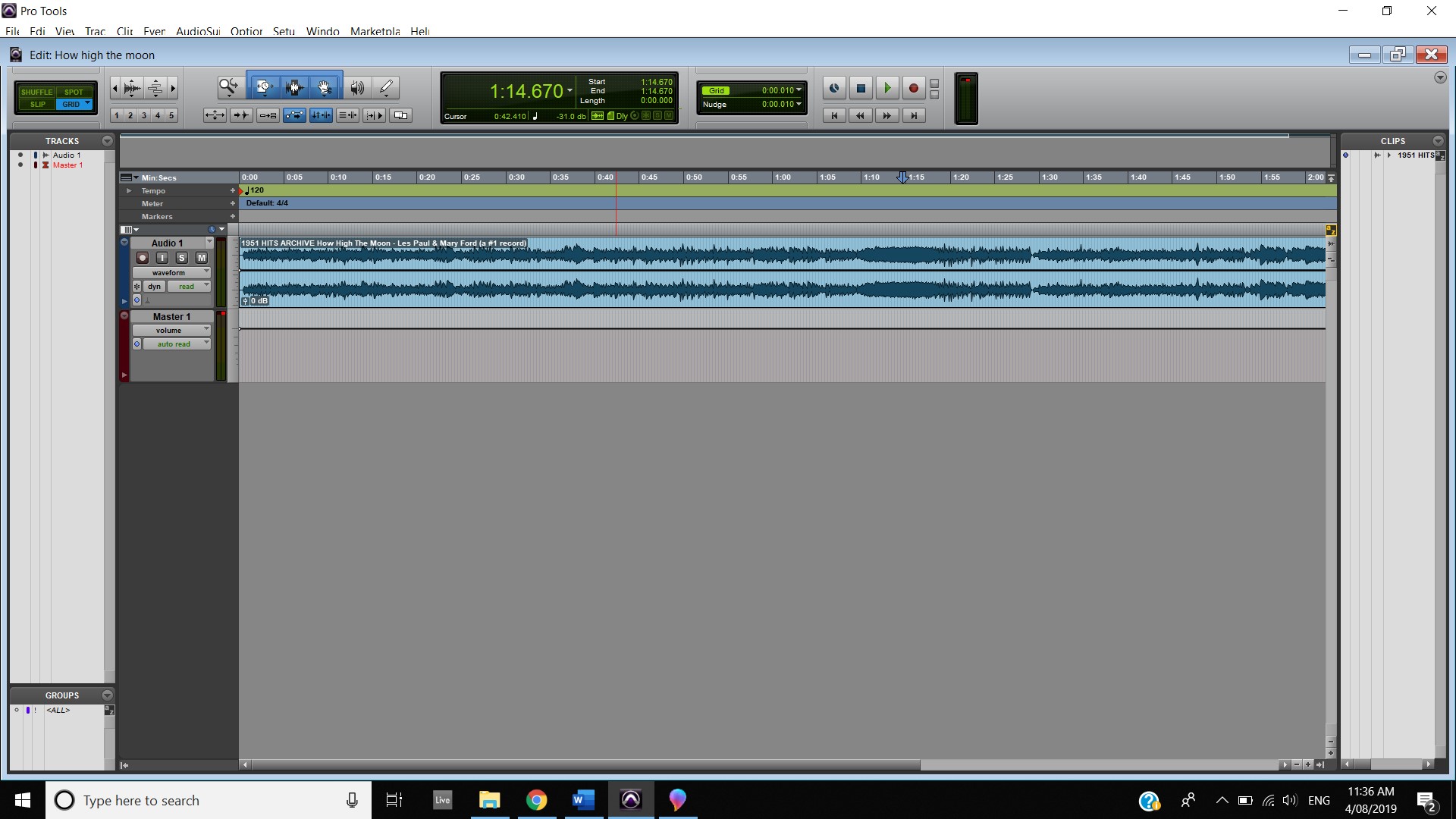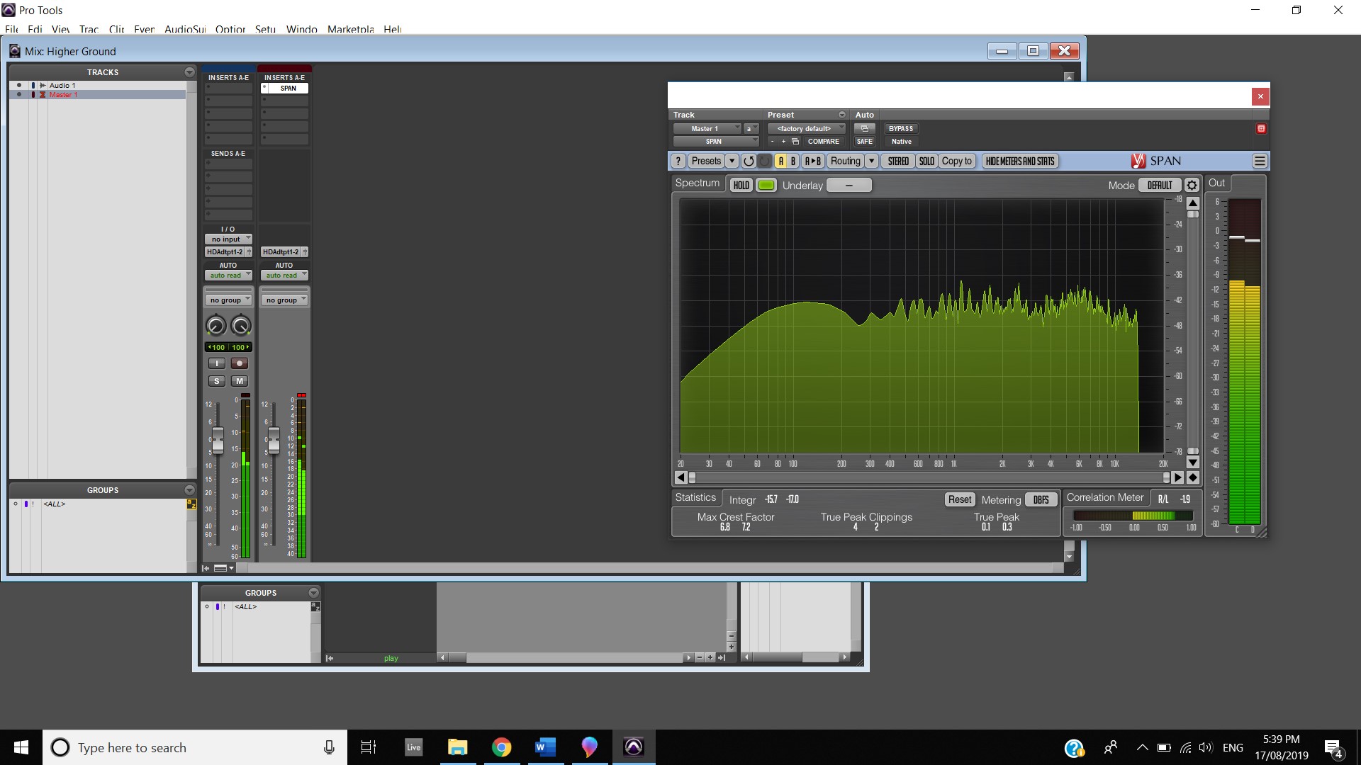 In terms of track panning, the majority of instruments featured have centred panning including, the vocals, which feature in the foreground of the mix, the acoustic guitar, which also is in the foreground and the bass, which is placed in the background. The electric guitar featured in the track also has foreground centre panning, however, during the guitar solo, 2:00 mins to 2:33 mins, there is a channel automation occurring where the instruments panning to the left channel and then to the right and so on throughout the solo. Most of the interesting track panning occurs to the drums, the snare drum is always featured in the centre of the mix, the hi hats are in the left channel, the crash cymbal is placed far in the acoustic space, and during the verses it feature in the left channel shown at 0:42-0:44 mins, then it can be heard out of the centre as well as the left channel at 0:50-1:05 mins, finally during the chorus, the crash cymbal automates between the left and right channel as shown at 1:40- 1:55 mins. The Toms also feature in the right channel and this is proven at 1:07 mins.