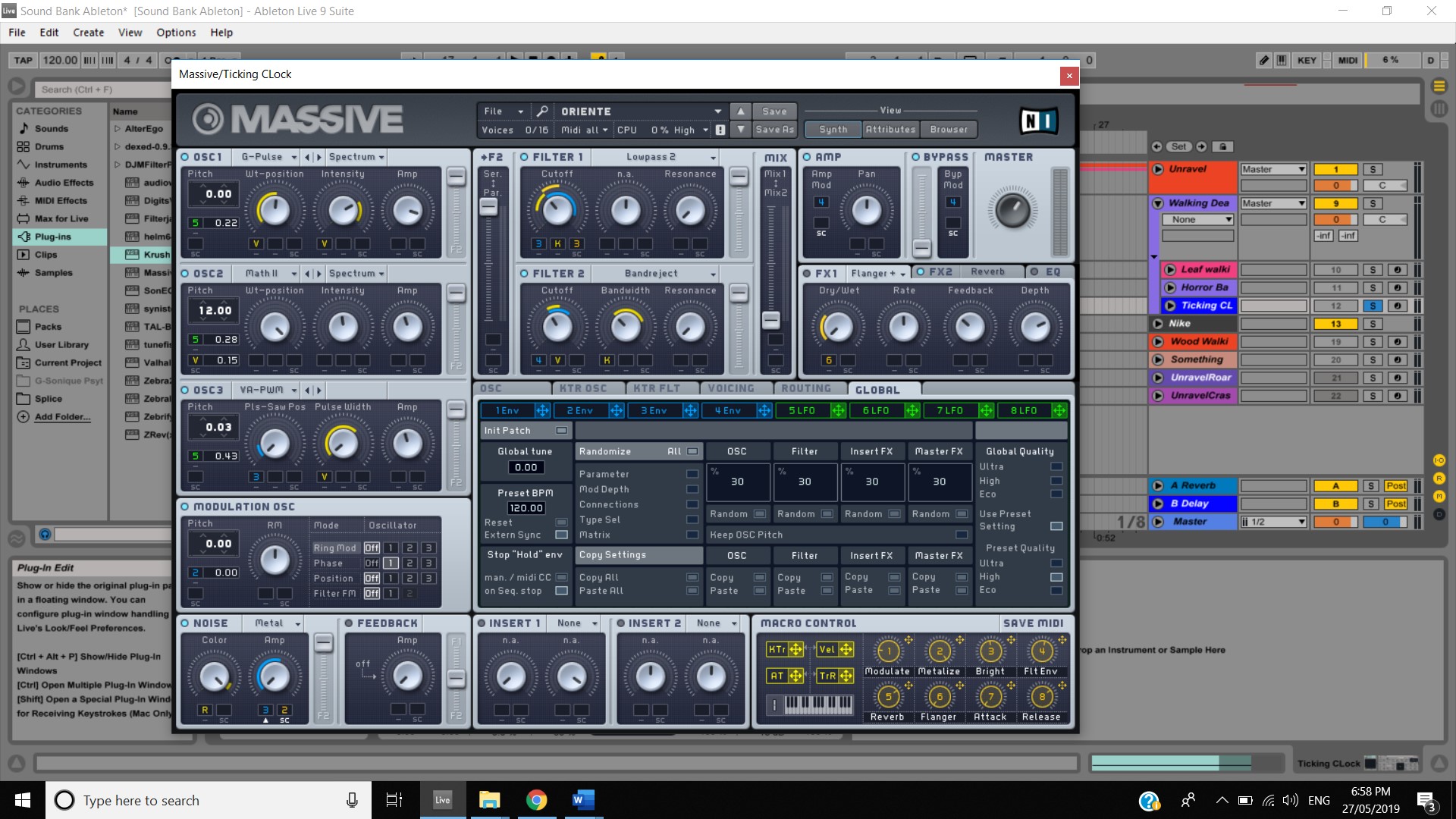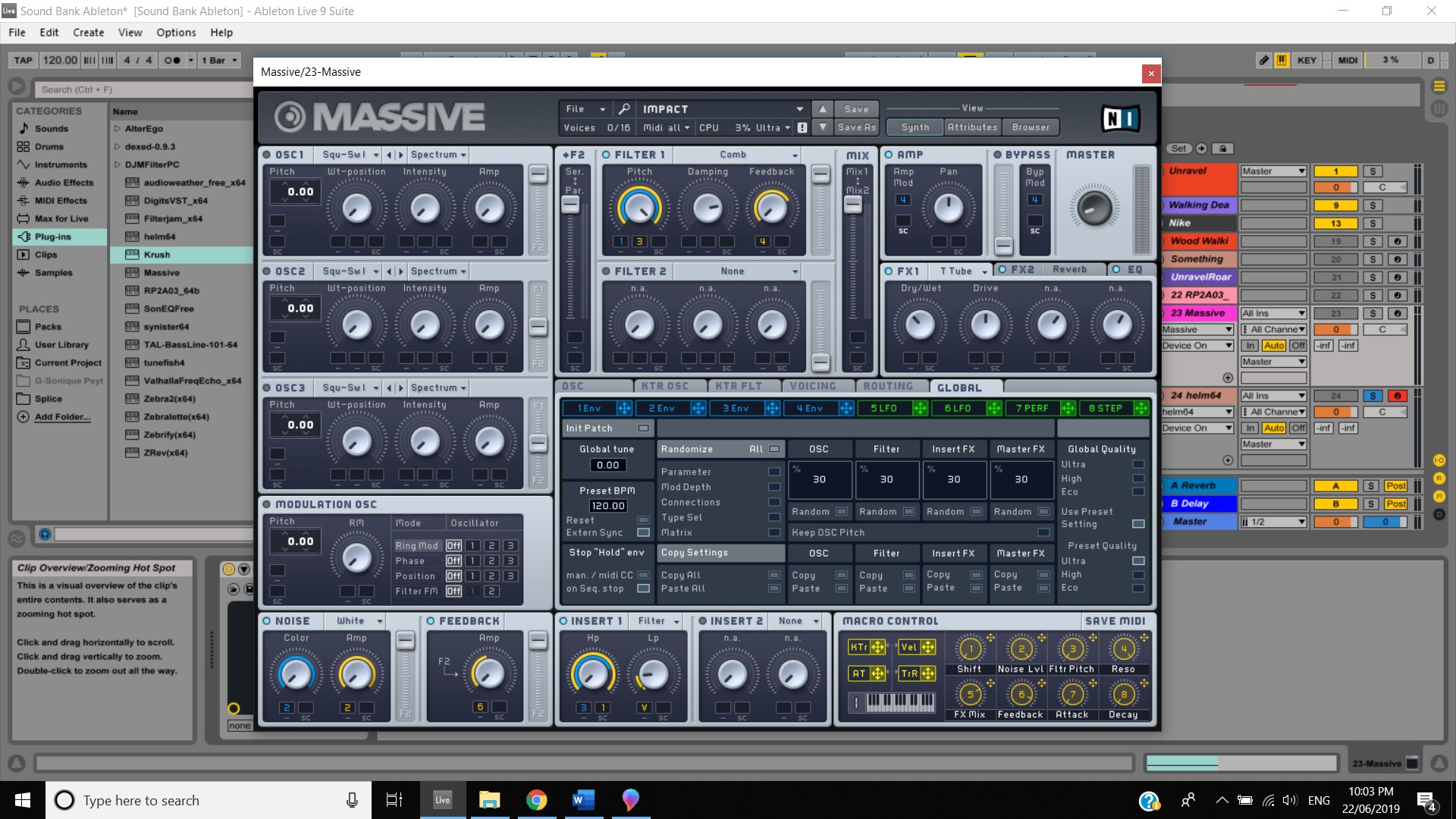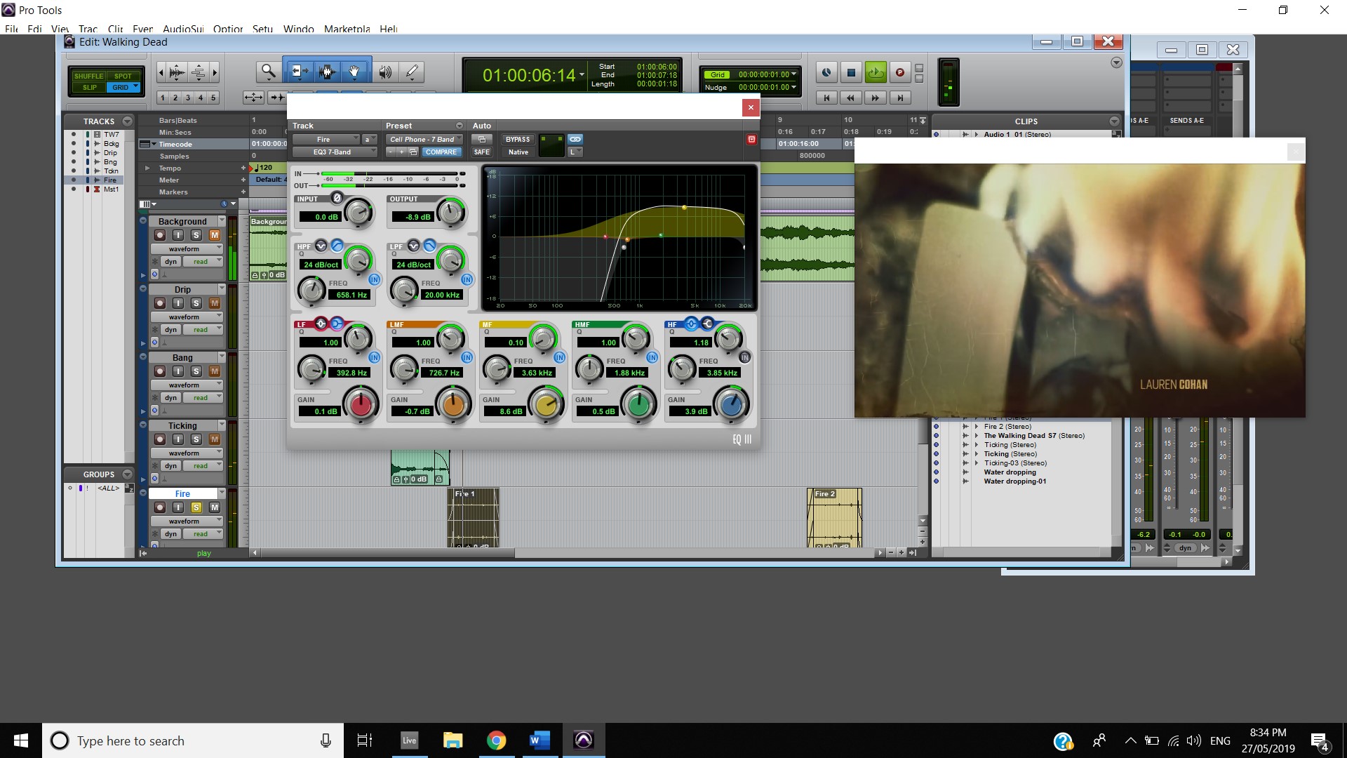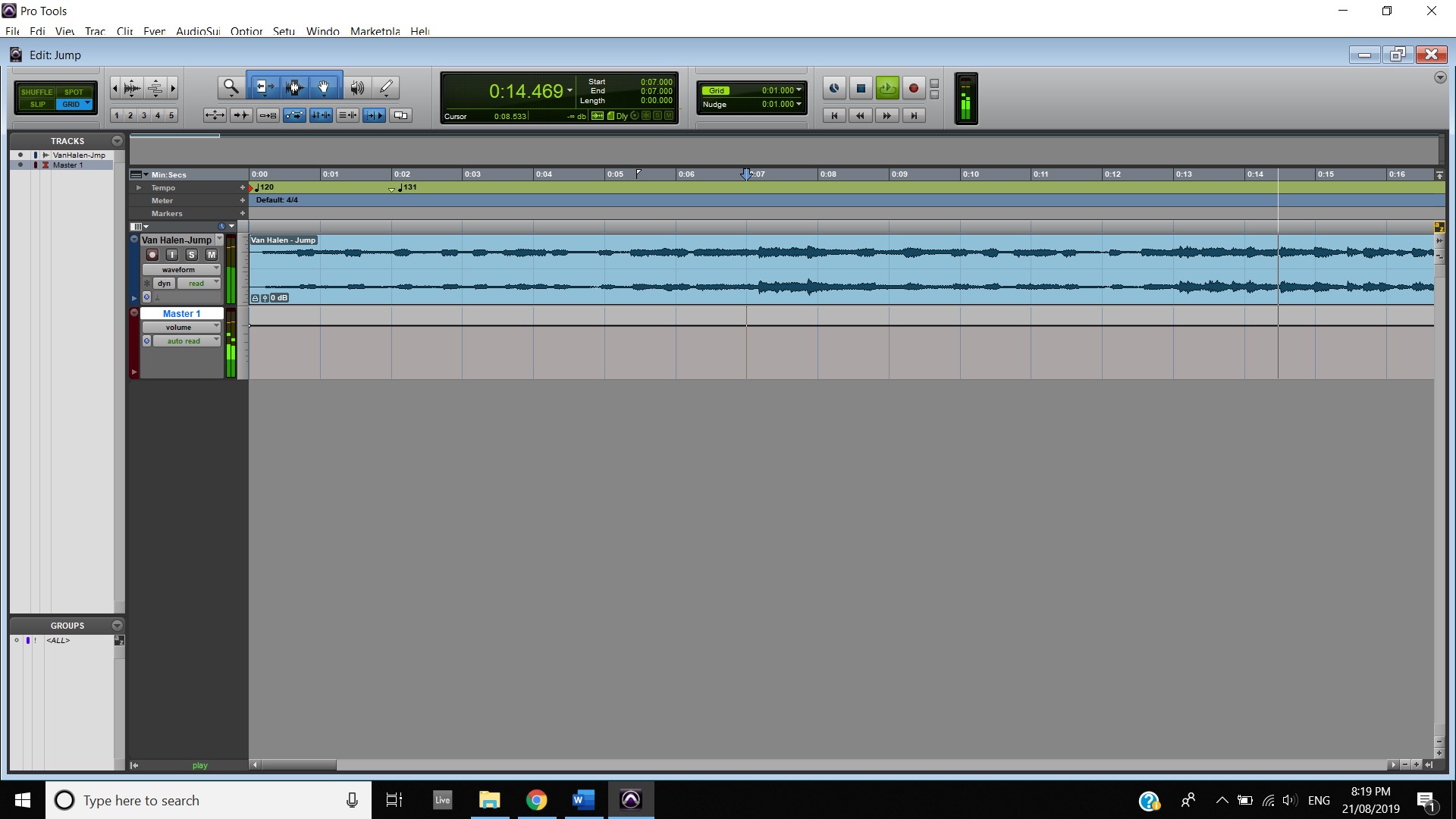 In terms of track panning, the majority of instruments featured have centred panning including, the vocals, which feature in the foreground of the mix, the acoustic guitar, which also is in the foreground and the bass, which is placed in the background. The electric guitar featured in the track also has foreground centre panning, however, during the guitar solo, 2:00 mins to 2:33 mins, there is a channel automation occurring where the instruments panning to the left channel and then to the right and so on throughout the solo. Most of the interesting track panning occurs to the drums, the snare drum is always featured in the centre of the mix, the hi hats are in the left channel, the crash cymbal is placed far in the acoustic space, and during the verses it feature in the left channel shown at 0:42-0:44 mins, then it can be heard out of the centre as well as the left channel at 0:50-1:05 mins, finally during the chorus, the crash cymbal automates between the left and right channel as shown at 1:40- 1:55 mins. The Toms also feature in the right channel and this is proven at 1:07 mins.