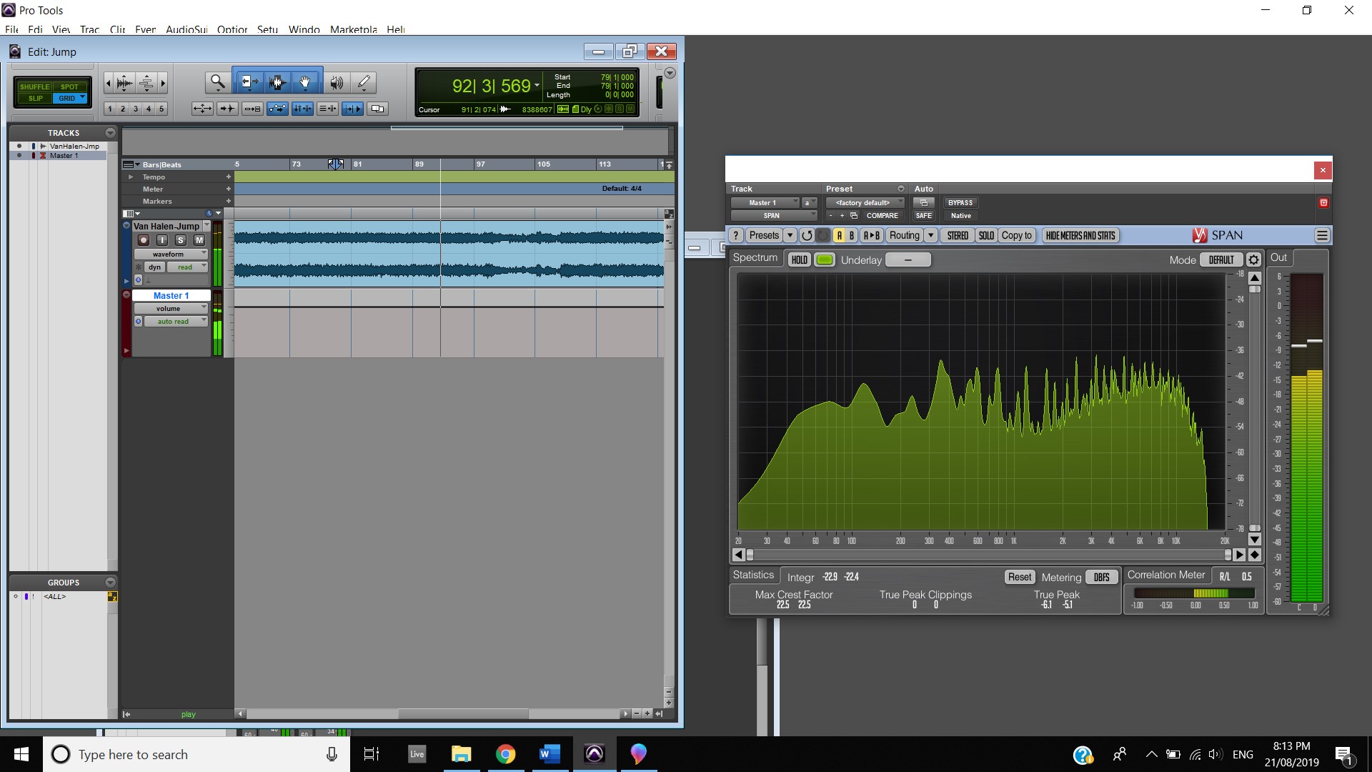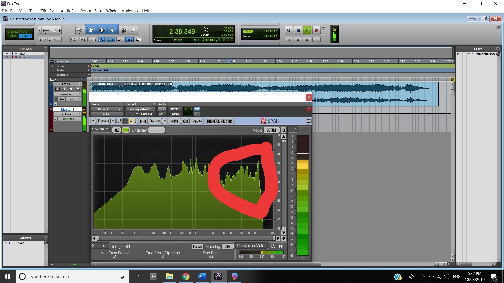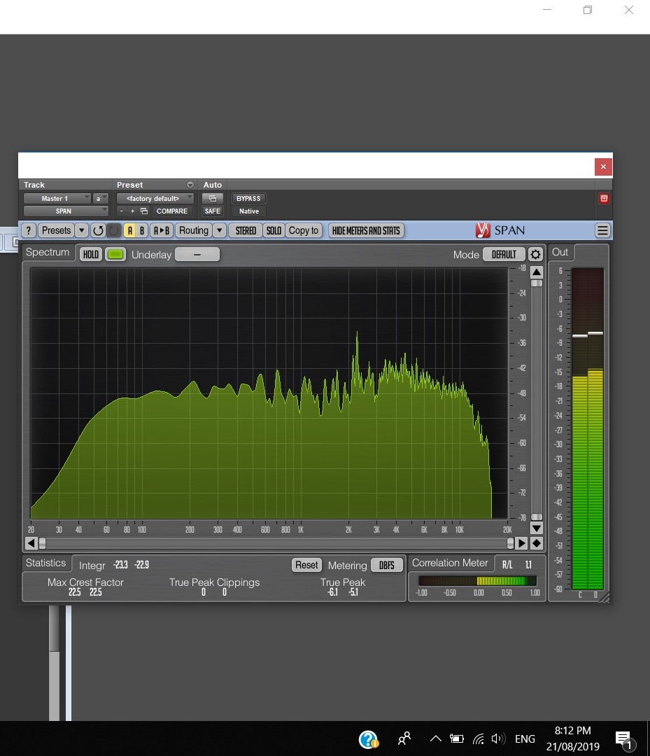 The boosted high frequencies continue throughout the guitar solo (First Screenshot) and when the last two “Memoria” are played where all frequencies even out.