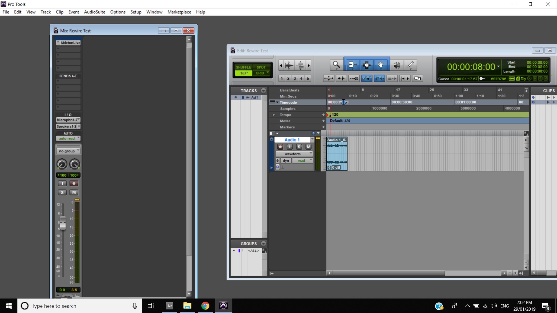 Another activity we had was to test the Rewire application to link Pro Tools and Ableton. I found this fairly straight forward and not difficult at all and it will obviously come in handy for use with the assignments with the composing process.